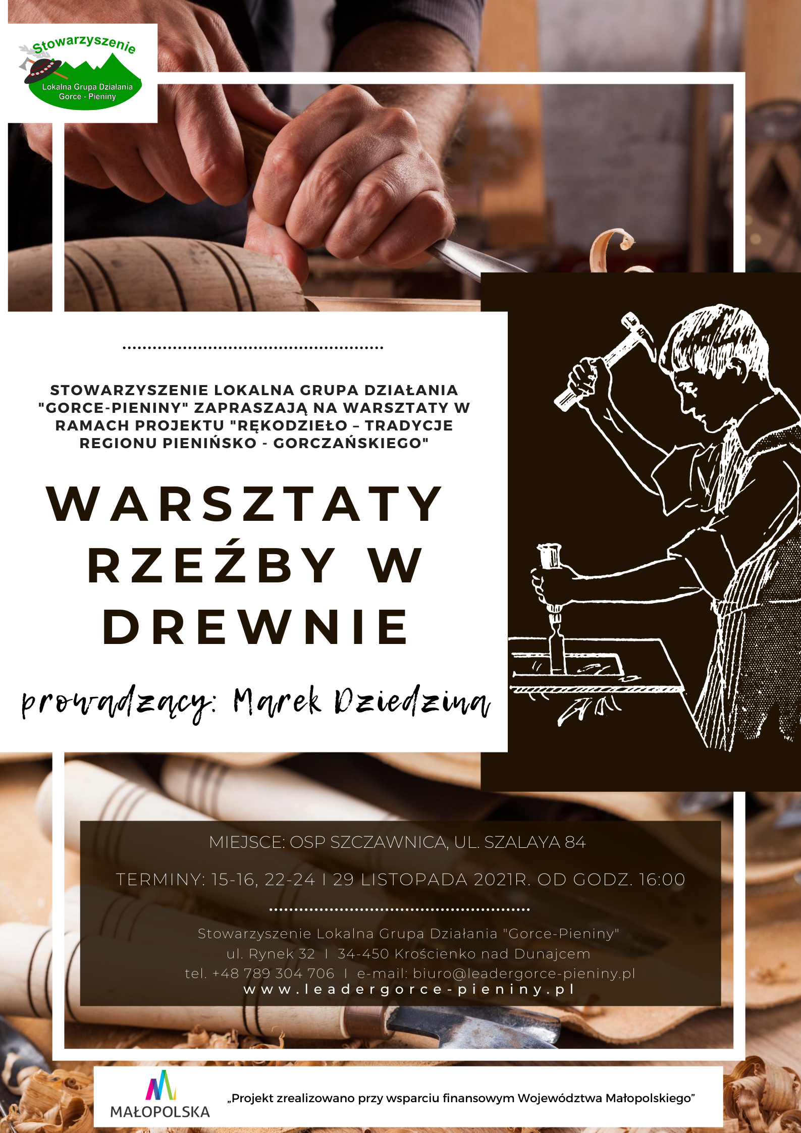 Warsztaty z RZEŹBY DŁUTEM to wspaniała inicjatywa jakiej podjęło się Stowarzyszenie Lokalna Grupa Działania „Gorce-Pieniny” w projekcie "RĘKODZIEŁO – Tradycje regionu pienińsko - gorczańskiego" dofinansowanego ze środków Województwa Małopolskiego w programie MECENAT MAŁOPOLSKI - I edycja.