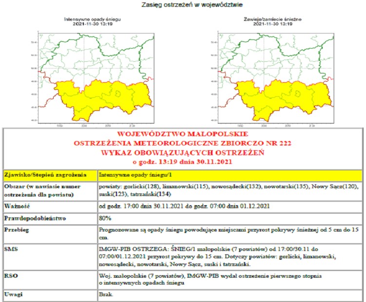 Ostrzeżenie meteorologiczne nr 222
