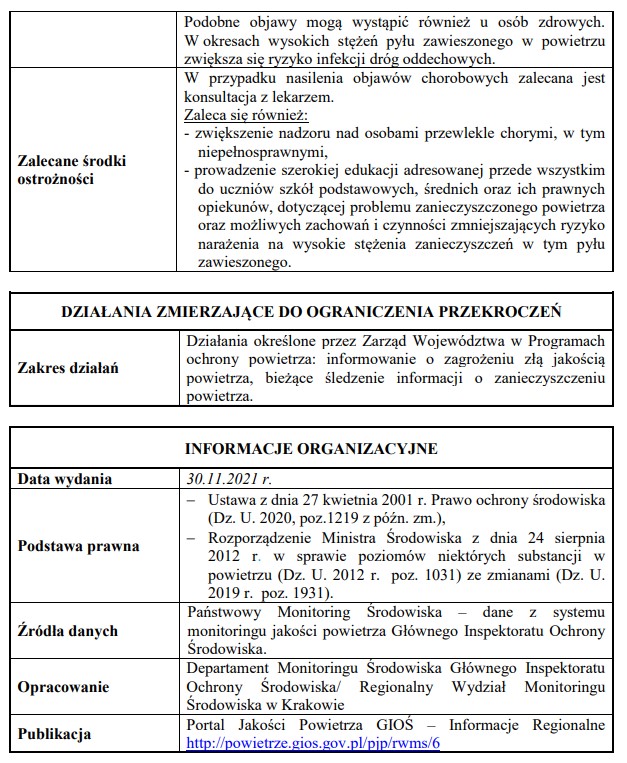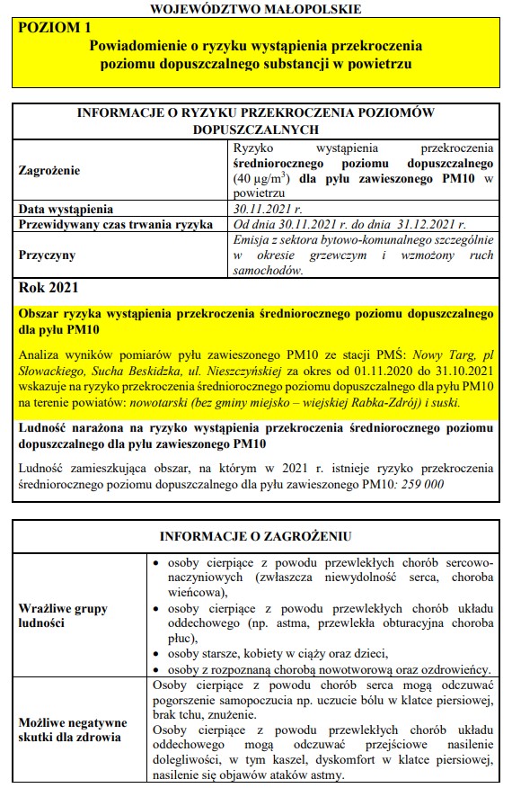 Powiadomienie o ryzyku wystąpienia przekroczenia poziomu dopuszczalnego substancji w powietrzu