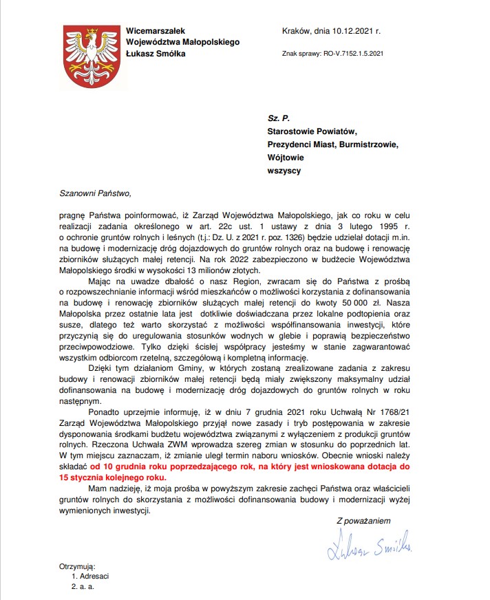 Prace zostały wykonane przez firmę F.H.U Leszek Bednarczyk, Kluszkowce za kwotę 686 235,78 zł w tym, ze środków Funduszu Przeciwdziałania COVID-19 w kwocie 591 342,86 zł.