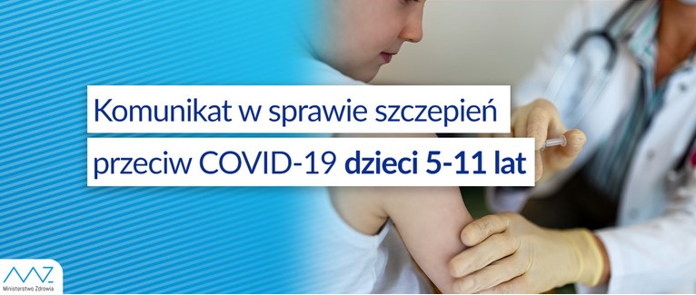 Minister Zdrowia informuje, że na podstawie zalecenia Zespołu ds. Szczepień Ochronnych wraz ze zmianą w rejestracji szczepionki Comirnaty (Pfizer-BioNTech) od 14 grudnia 2021 r. rozpoczną się szczepienia w grupie dzieci 5-11 lat.