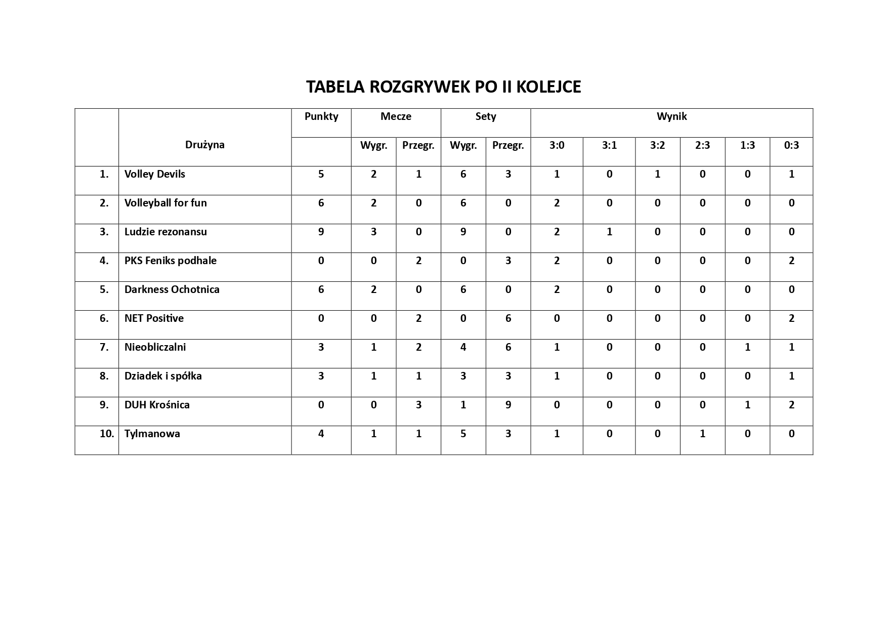 Przedstawiamy aktualną tabelę rozgrywek Amatorskiej Ligi Piłki Siatkowej w Gminie Czorsztyn!