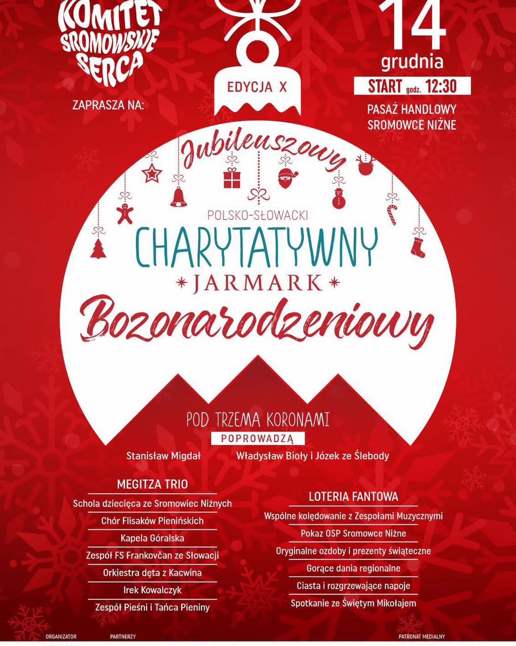 Komitet Sromowskie Serca zaprasza na X Jubileuszowy Polsko-Słowacki Charytatywny Jarmark Bożonarodzeniowy.