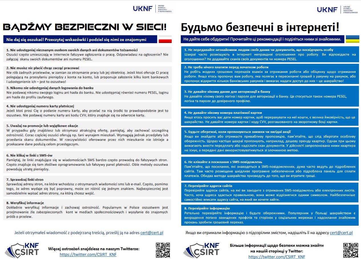 PDF - ulotka do pobrania bądźmy bezpieczni w sieci przygotowana przez Urząd Komisji Nadzoru Finansowego