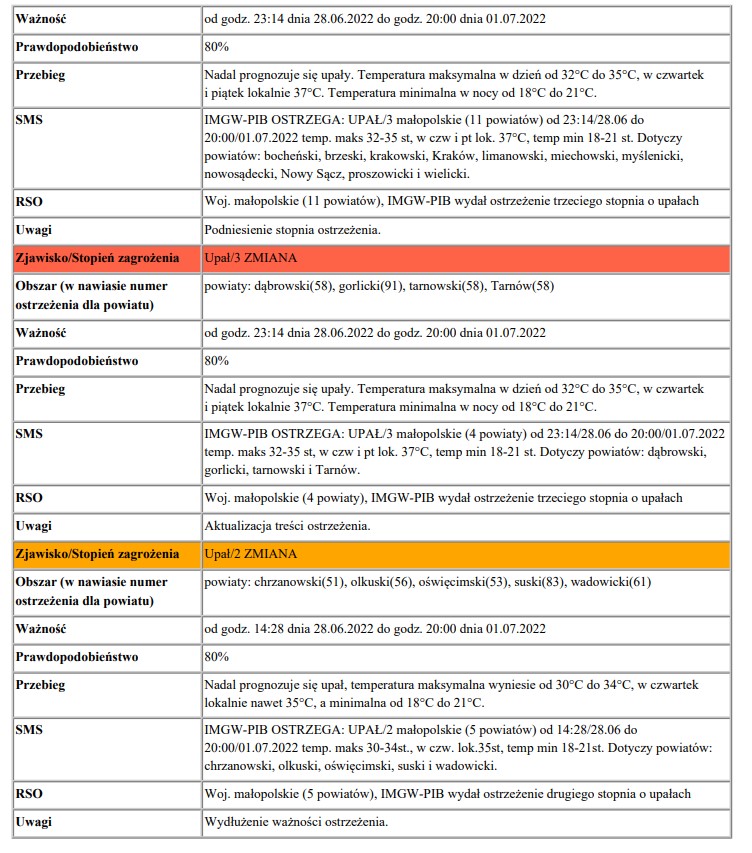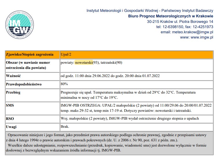 Ostrzeżenie meteorologiczne nr 140 - upały/burze z gradem